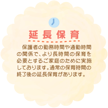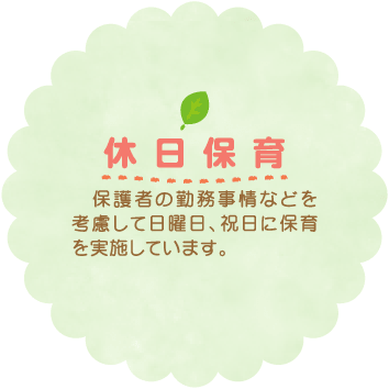 *特別保育の内容は、各園によって異なります。詳細は各園にお問い合わせください。